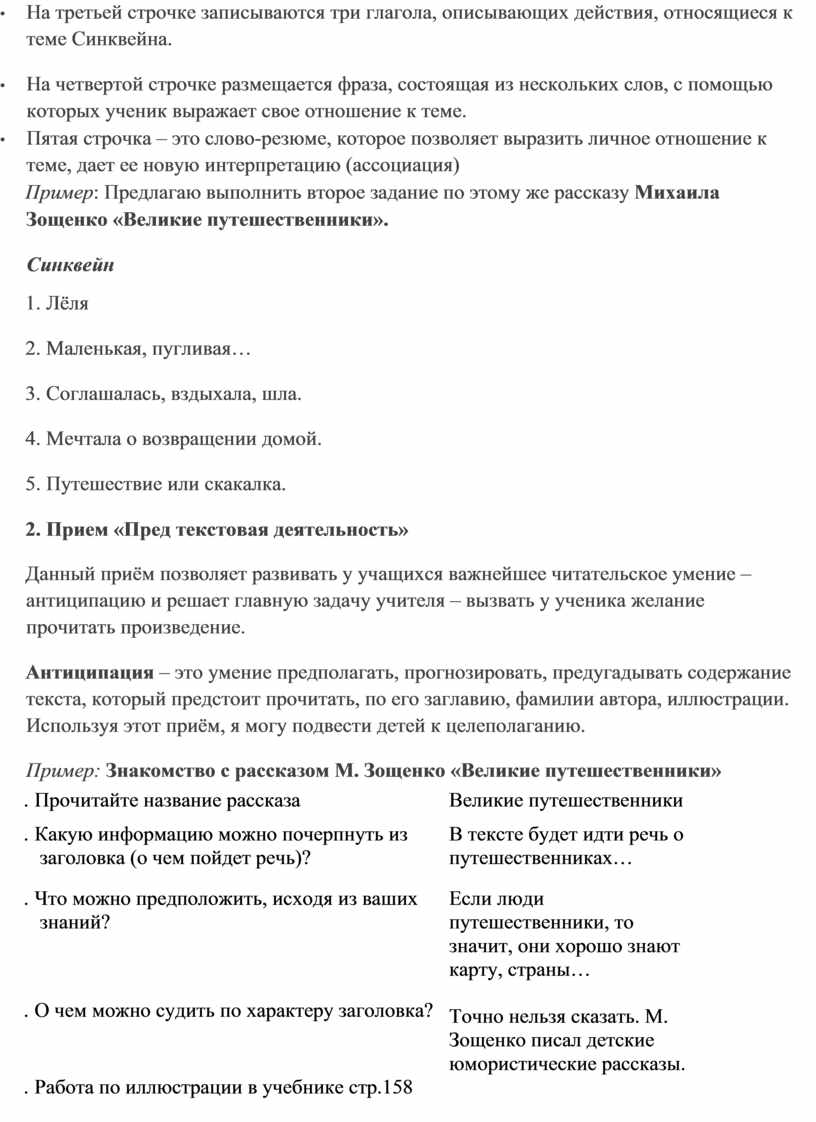 Пример: Предлагаю выполнить второе задание по этому же рассказу Михаила Зощенко «Великие путешественники».