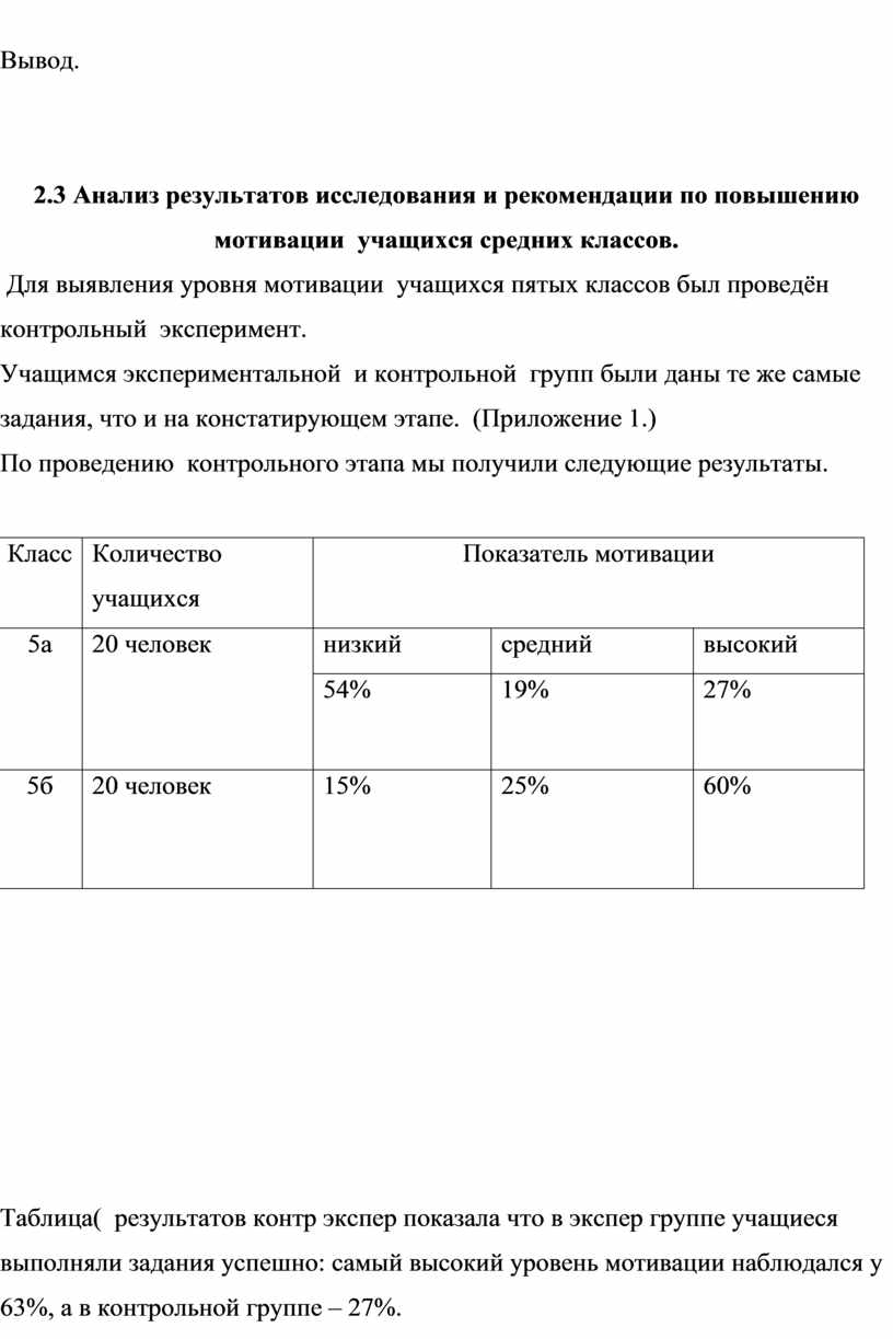 2.3 Анализ результатов исследования и рекомендации по повышению мотивации учащихся средних классов.