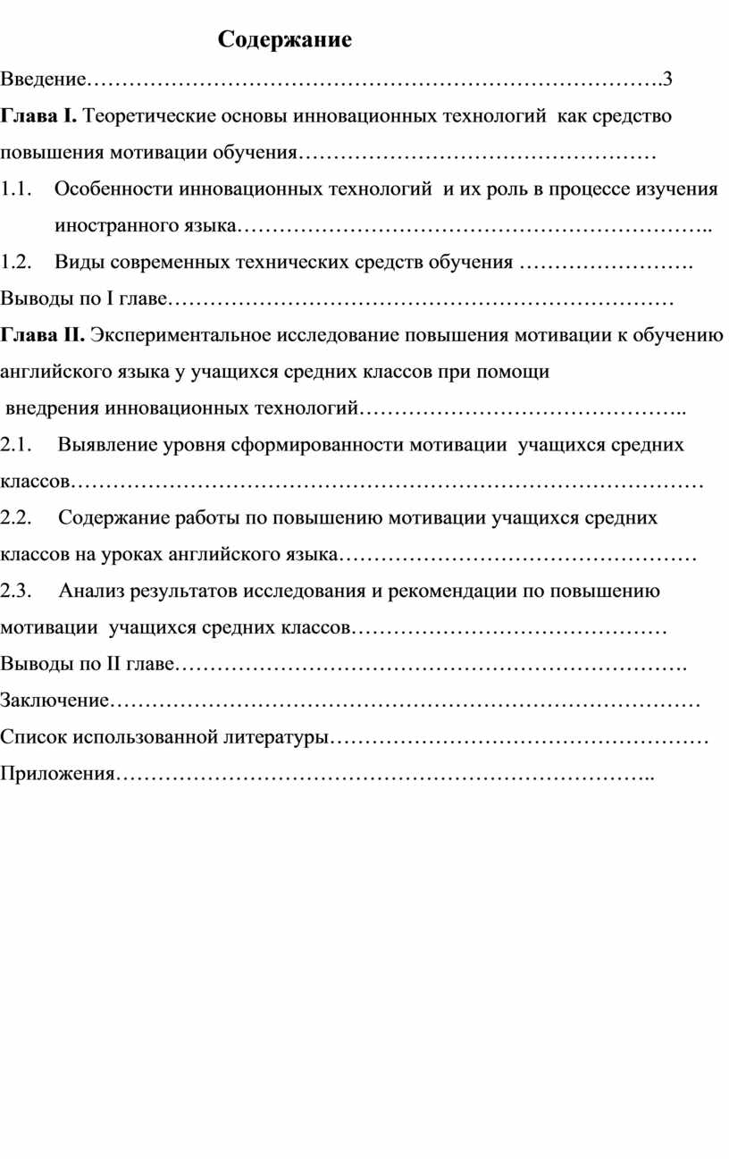 Глава I. Теоретические основы инновационных технологий как средство повышения мотивации обучения……………………………………………
