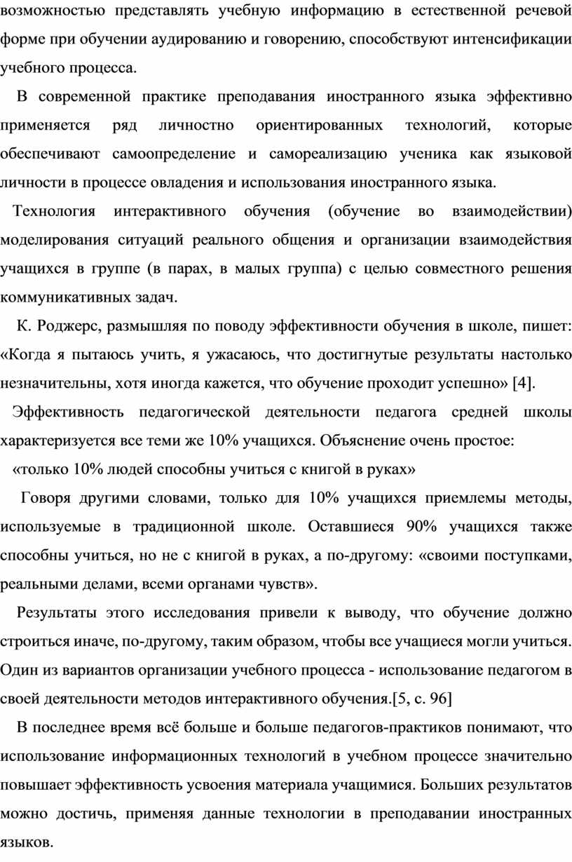 В современной практике преподавания иностранного языка эффективно применяется ряд личностно ориентированных технологий, которые обеспечивают самоопределение и самореализацию ученика как языковой личности в процессе овладения и использования иностранного языка.