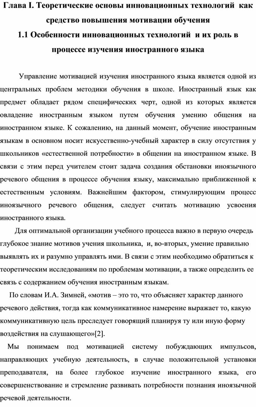 Глава I. Теоретические основы инновационных технологий как средство повышения мотивации обучения
