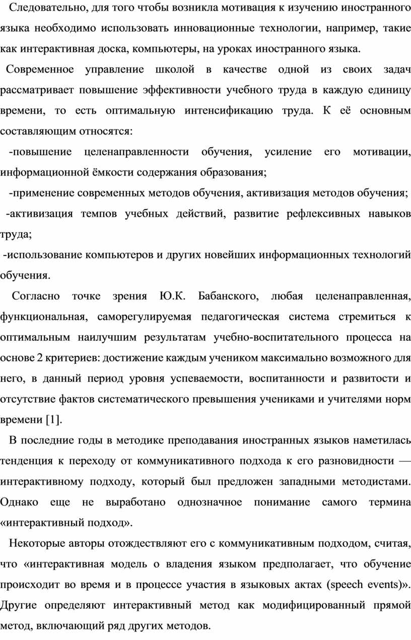 В последние годы в методике преподавания иностранных языков наметилась тенденция к переходу от коммуникативного подхода к его разновидности — интерактивному подходу, который был предложен западными методистами. Однако еще не выработано однозначное понимание самого термина «интерактивный подход».