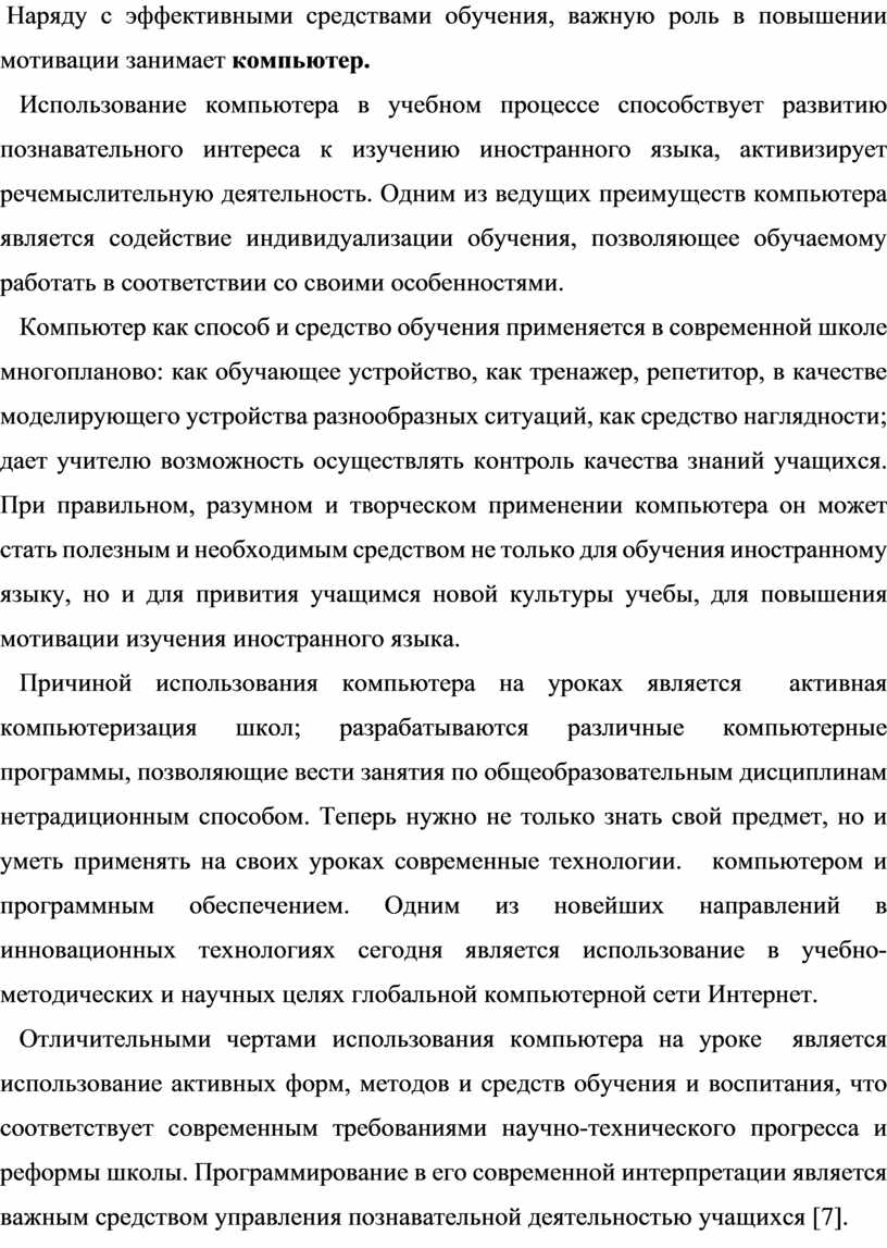 -использование компьютеров и других новейших информационных технологий обучения.