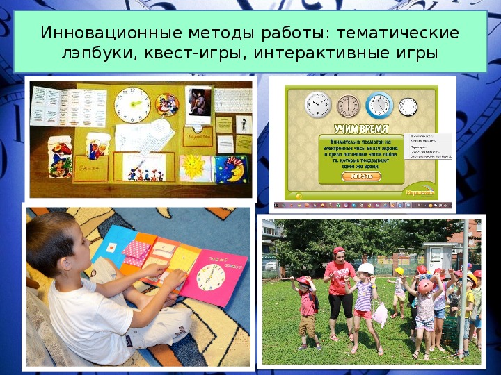 Формы реализации, методы и приемы использовались как традиционные, так и инновационные, среди которых можно выделить тематические лэпбуки, квест-игры, интерактивные, интеллектуальные игры, конкурсы, викторины и дни открытых дверей.