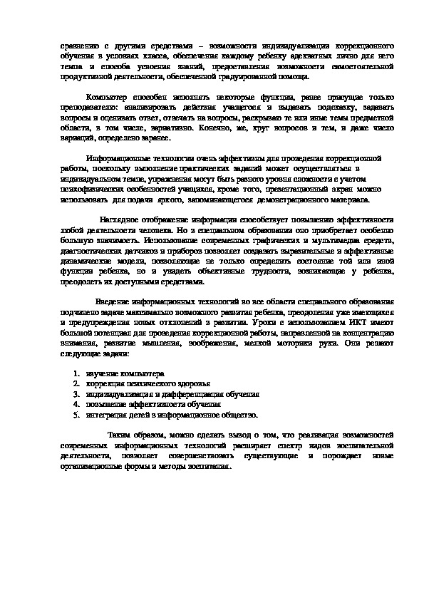 Дефектологический смысл применения компьютерных технологий состоит, прежде