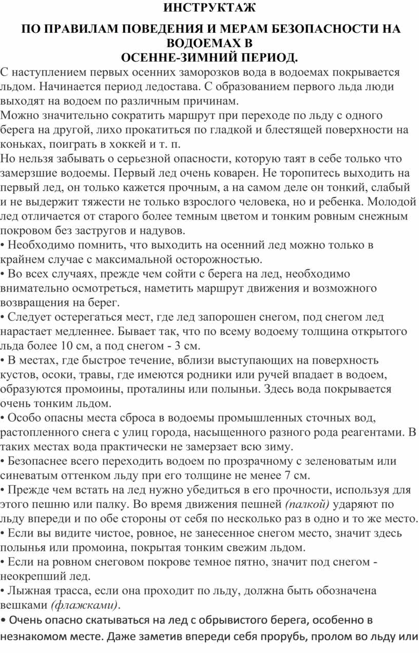 • Во всех случаях, прежде чем сойти с берега на лед, необходимо внимательно осмотреться, наметить маршрут движения и возможного возвращения на берег.