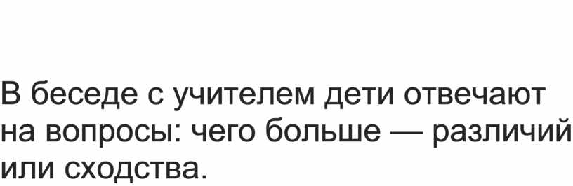 В беседе с учителем дети отвечают на вопросы: чего больше — различий или сходства.