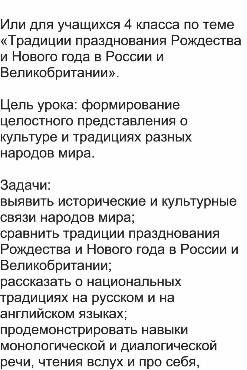 Или для учащихся 4 класса по теме «Традиции празднования Рождества и Нового года в России и Великобритании».