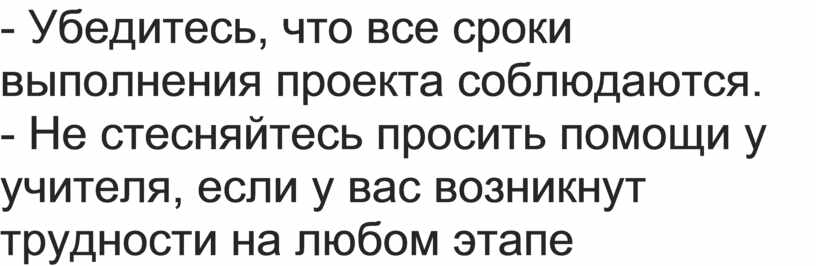 - Убедитесь, что все сроки выполнения проекта соблюдаются.