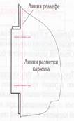 Долевки прокладывают с изнаночной спинки, чтобы он перекрывал линию кармана на 2...3см и выходил за контрольные знаки на 1…1,5см |
