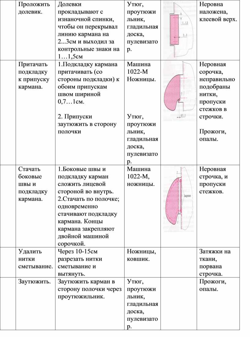 Технологическая последовательность обработки кармана в боковом шве