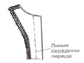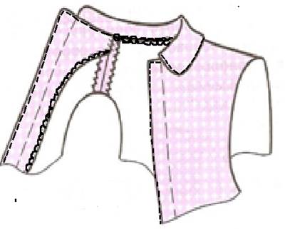 Обтачивание выполняют по нижнему воротнику на стачивающей машине швом шириной 0,6 - 0,7 см |