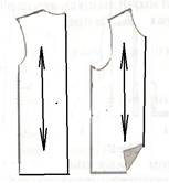 Воротник – 2 дет. Нить основы на верхнем воротнике проходит параллельно середины воротника. Верхний воротник выкроен на 0,1-0,2 см. больше нижнего. Части нижнего воротника складывают лицевыми сторонами внутрь и уравнивают по срезу стойки. Части нижнего воротника стачивают швом шириной 0,5 - 0,7 см, а ширина среднего шва - 1 см. Подборт – 2 дет, нить основы проходит параллельно внешнему срезу подборта Полочка -2 дет, нить основы проходит параллельно середины полочки. Спинка -1 дет со сгибом., нить основы проходит параллельно середины спинки |