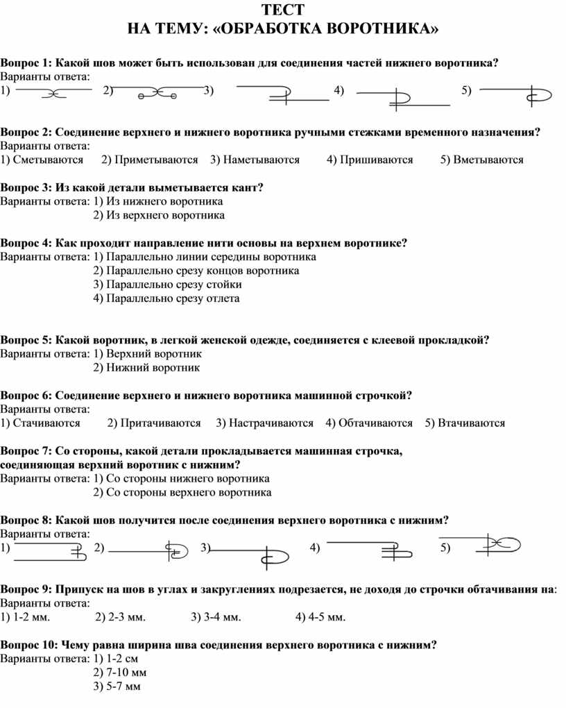 Вопрос 1: Какой шов может быть использован для соединения частей нижнего воротника?