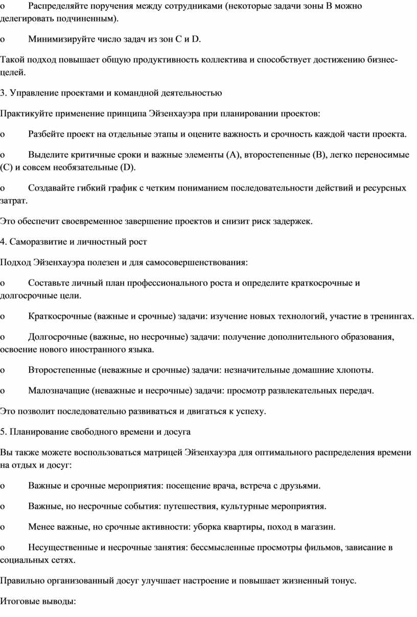 2. Использование принципа Эйзенхауэра в бизнесе и руководстве коллективом