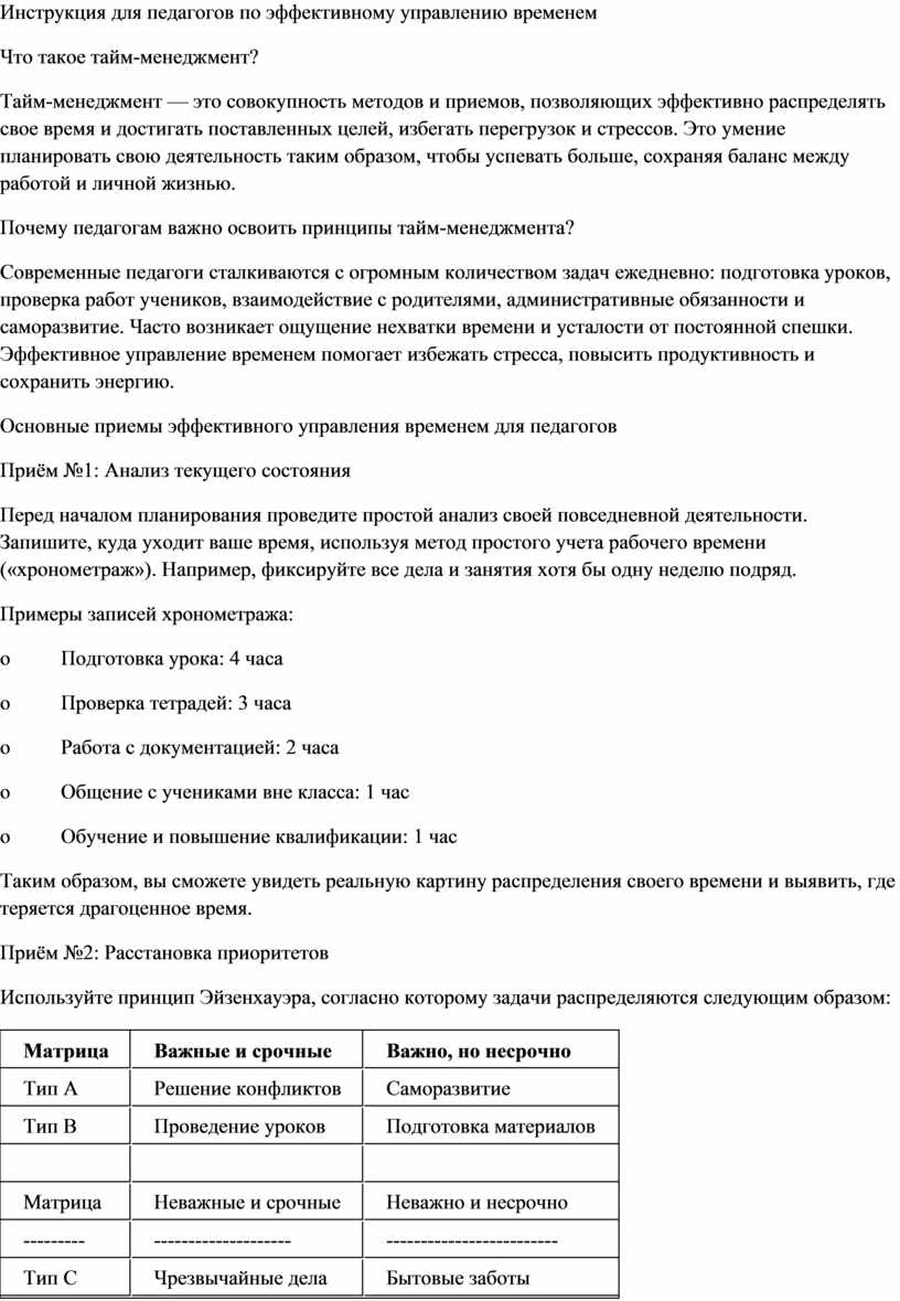 Современные педагоги сталкиваются с огромным количеством задач ежедневно: подготовка уроков, проверка работ учеников, взаимодействие с родителями, административные обязанности и саморазвитие. Часто возникает ощущение нехватки времени и усталости от постоянной спешки. Эффективное управление временем помогает избежать стресса, повысить продуктивность и сохранить энергию.
