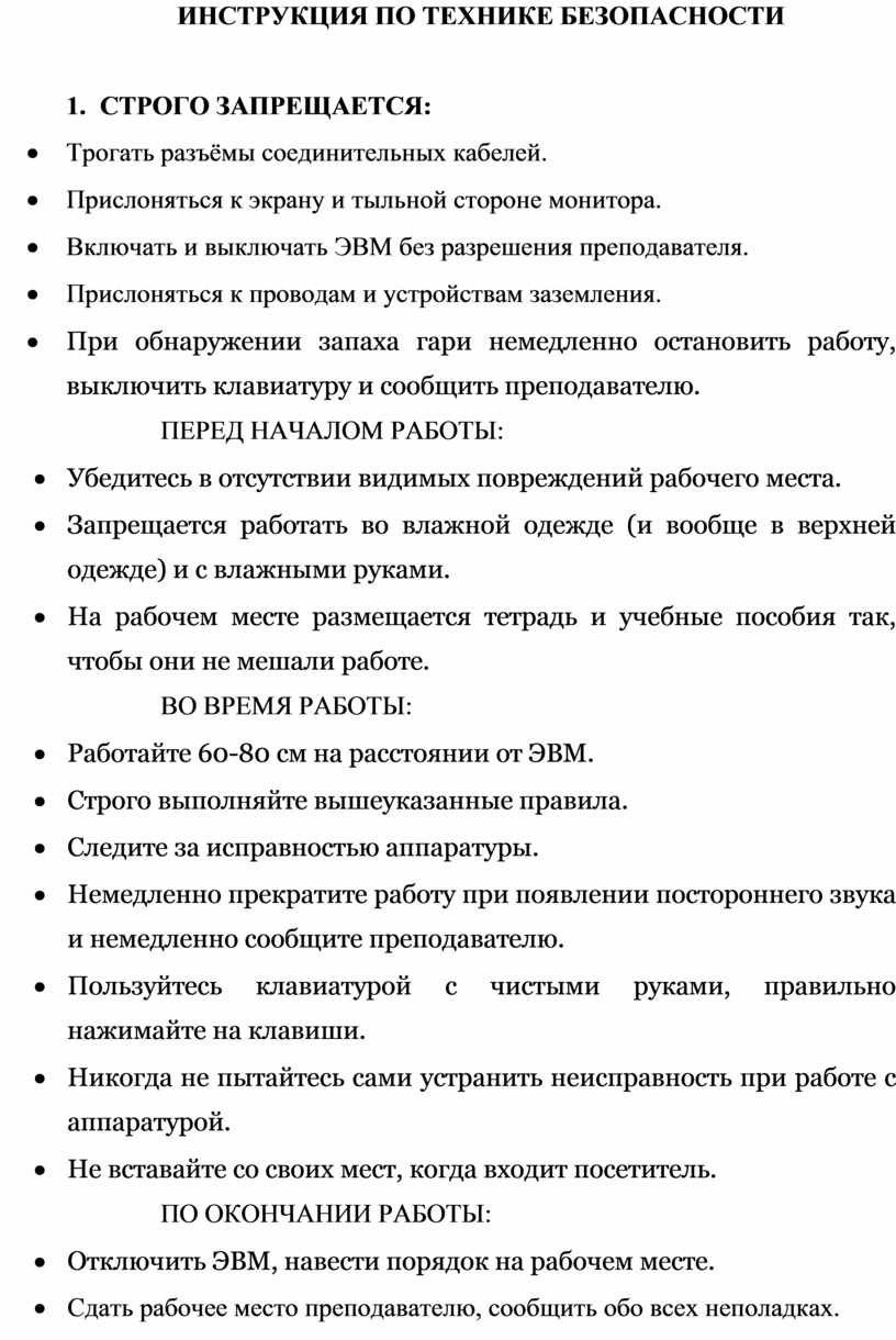 ИНСТРУКЦИЯ ПО ТЕХНИКЕ БЕЗОПАСНОСТИ