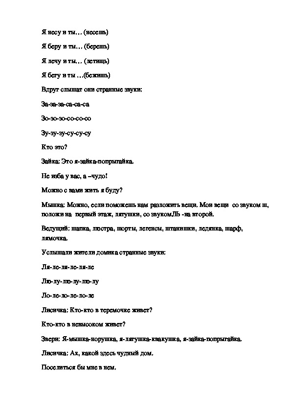 Звери: Ямышканорушка, ялягушкаквакушка, язайкапопрыгайка.