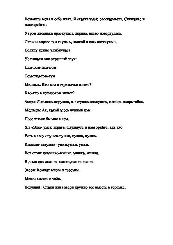 Ведущий : Стали жить звери дружно все вместе в теремке.