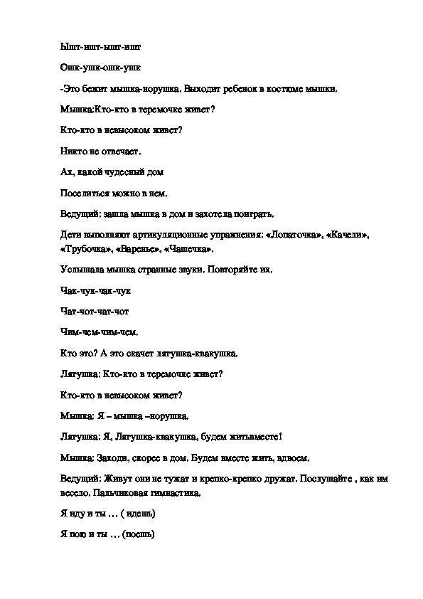 Ведущий: зашла мышка в дом и захотела поиграть.