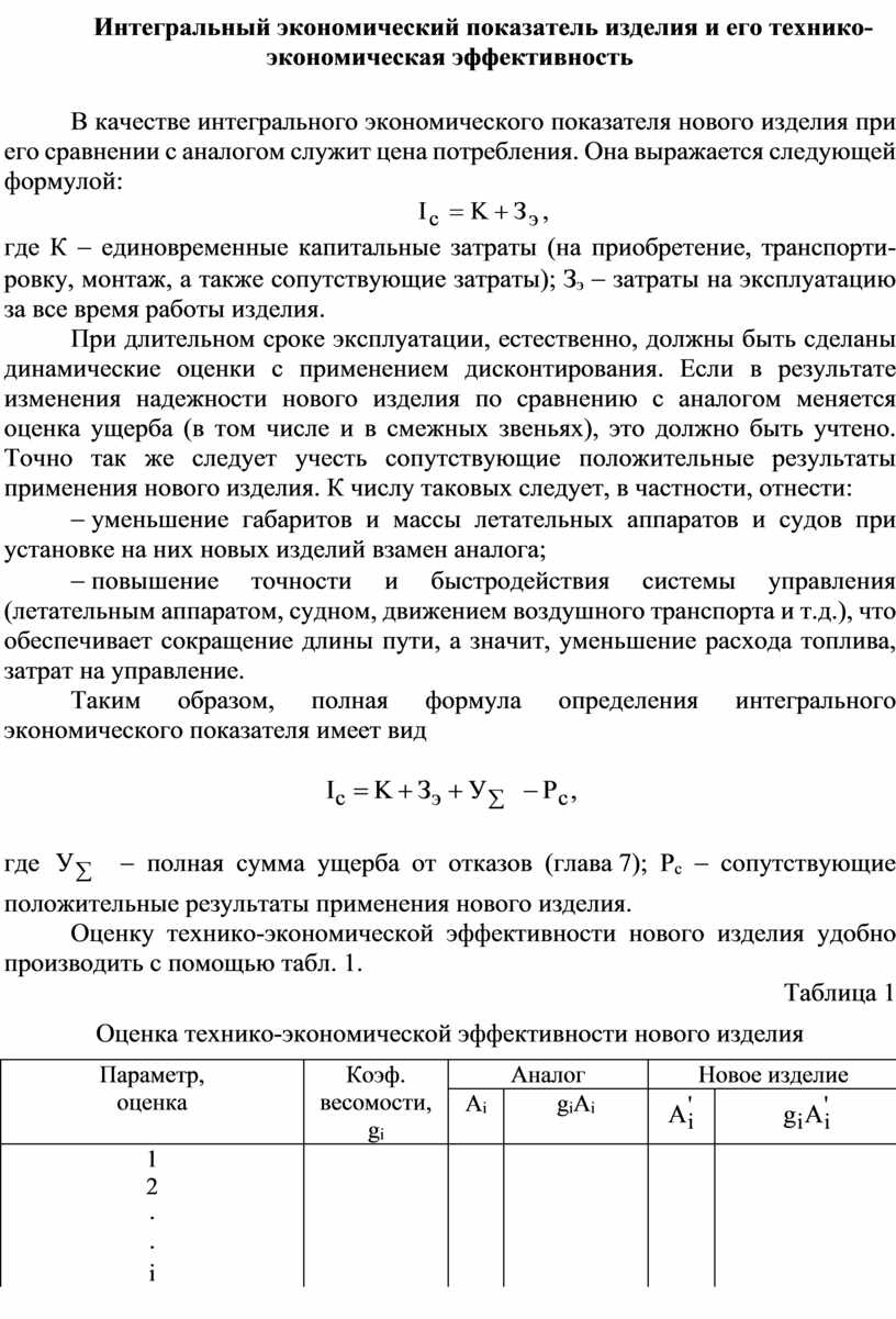 Интегральный экономический показатель изделия и его технико-экономическая эффективность
