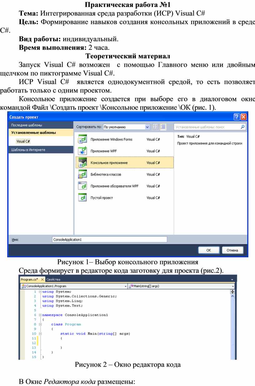 Тема: Интегрированная среда разработки (ИСР) Visual C#