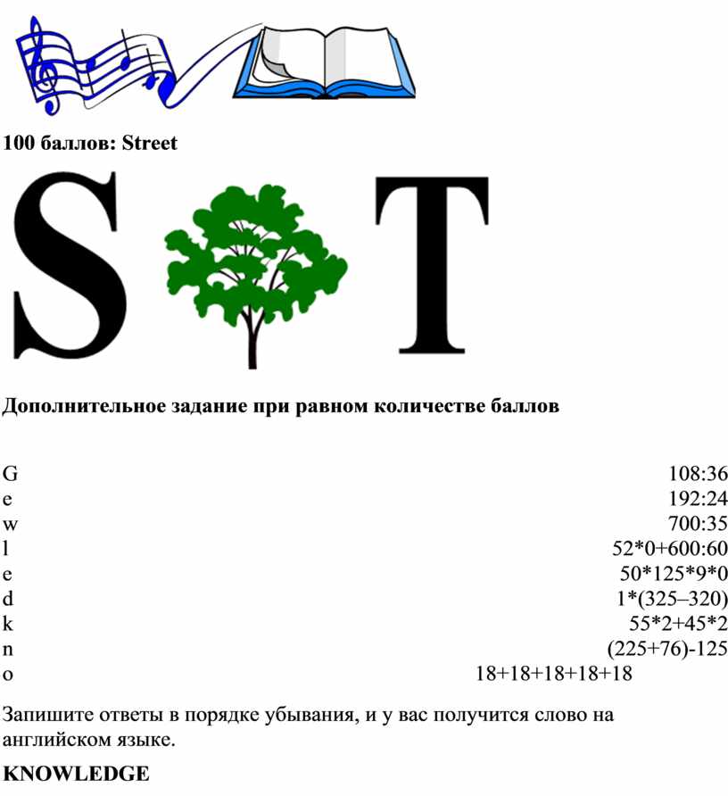 Запишите ответы в порядке убывания, и у вас получится слово на английском языке.