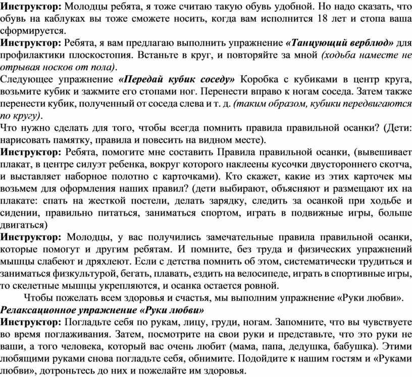 Инструктор: Молодцы ребята, я тоже считаю такую обувь удобной. Но надо сказать, что обувь на каблуках вы тоже сможете носить, когда вам исполнится 18 лет и стопа ваша сформируется.