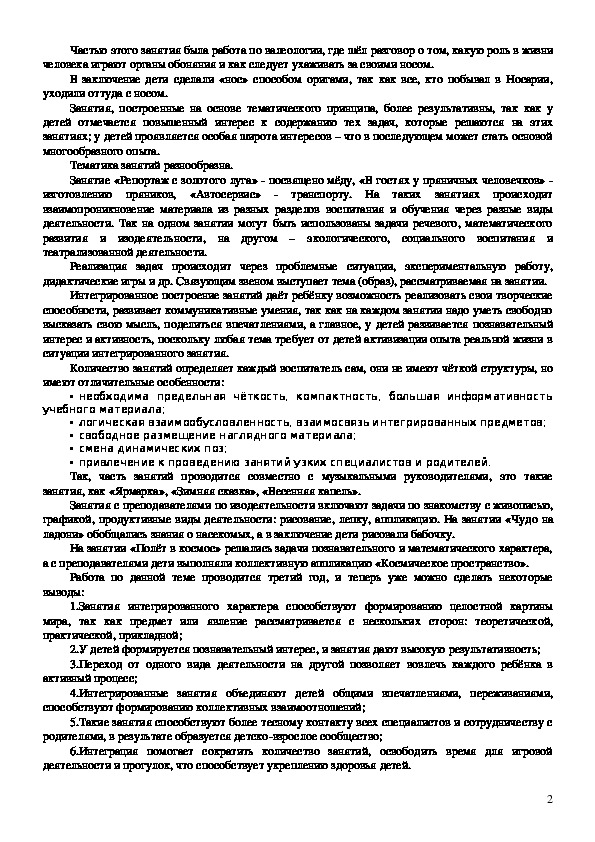 1.Занятия интегрированного характера способствуют формированию целостной картины