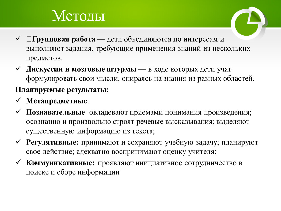 Групповая работа — дети объединяются по интересам и выполняют задания, требующие применения знаний из нескольких предметов.