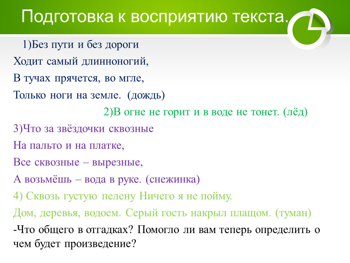 -Что общего в отгадках? Помогло ли вам теперь определить о чем будет произведение?