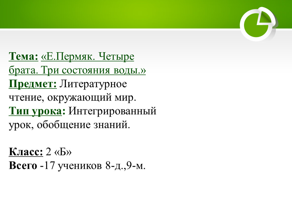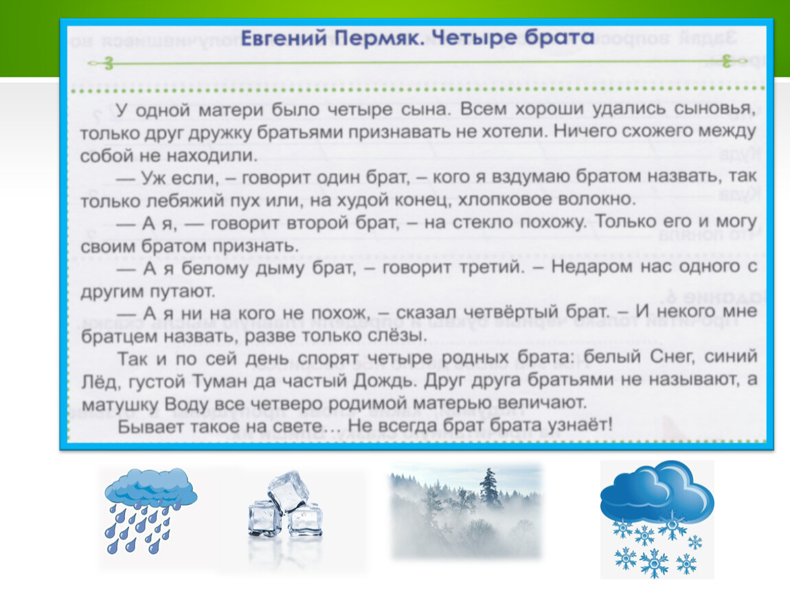 Тема: «Е.Пермяк. Четыре брата. Три состояния воды.»