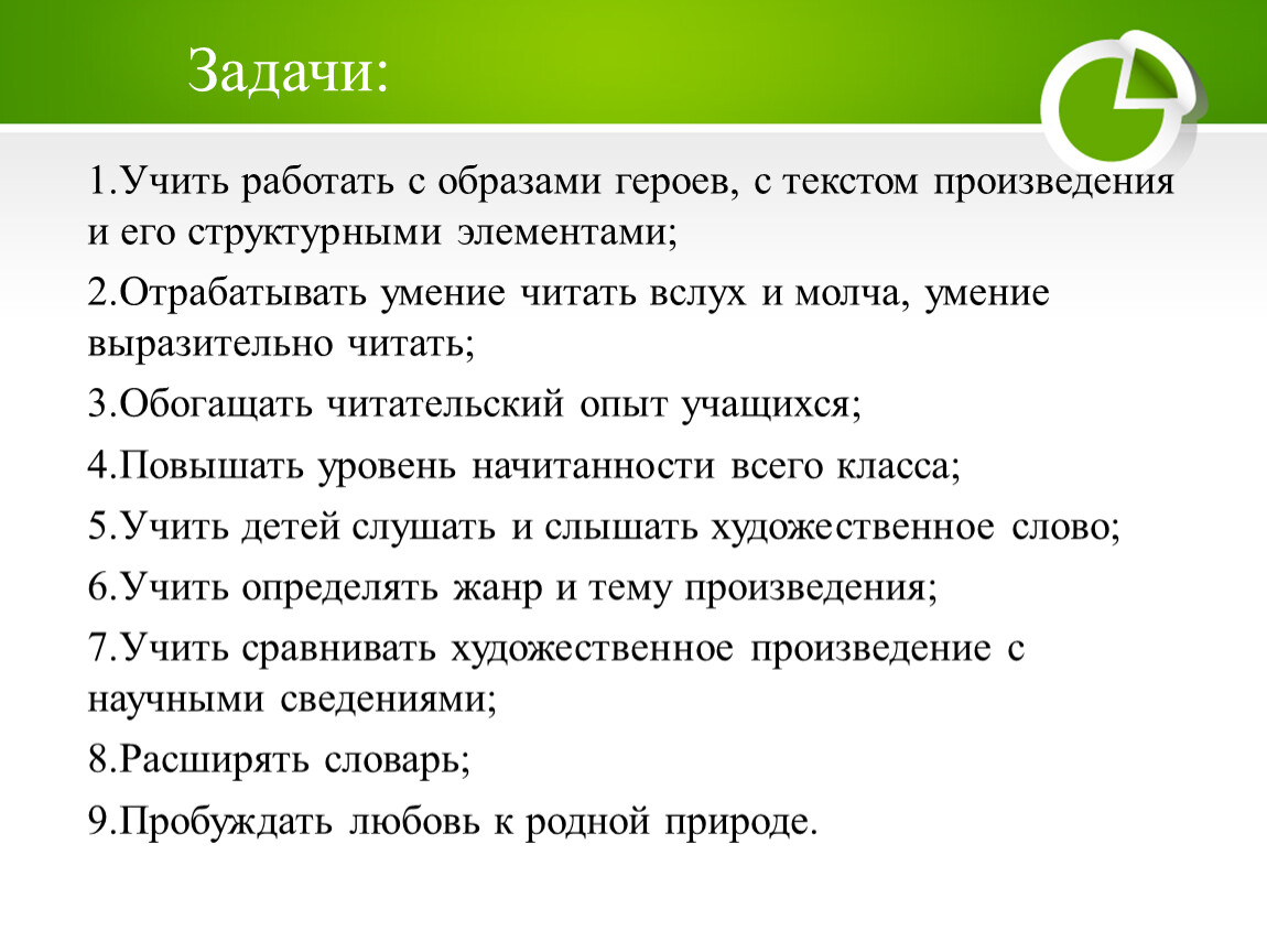 1.Учить работать с образами героев, с текстом произведения и его структурными элементами;