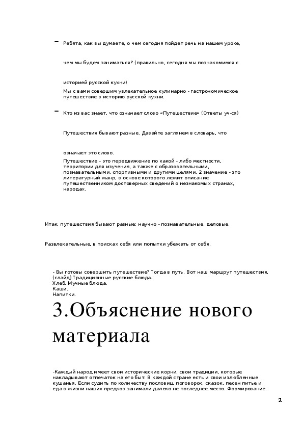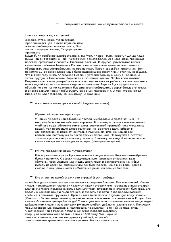 Цели: обучающая - познакомить учащихся с историей русской кухни и русских национальных блюд, создать условия для расширения знаний учащихся о русской кулинарной культуре. Развивающая - развитие ин тереса к своей истории. Воспитывающая - воспитание уважения к укладу жизни, быту, обычаям предков. Тип урока: интегрированный