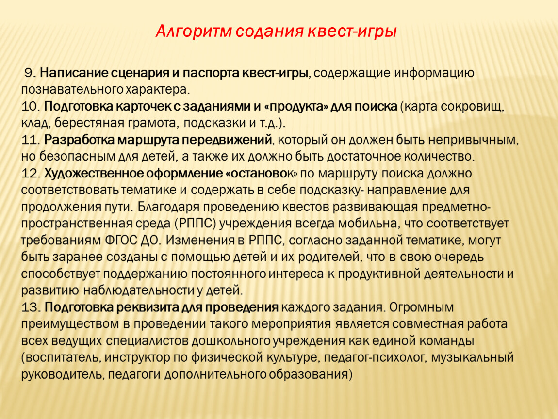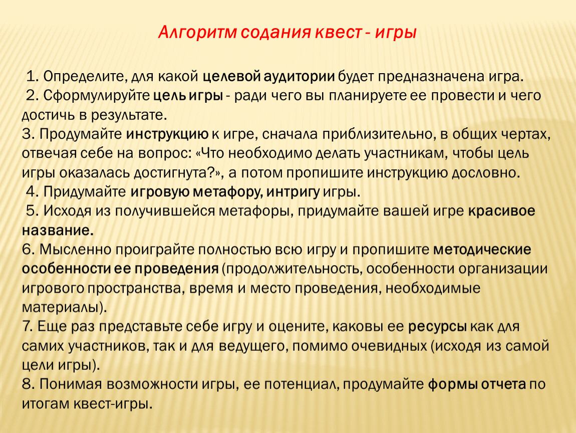 3.Процесс. В данной части квеста находится пошаговая инструкция, помогающая участникам выполнить задание. Каждый шаг следует подробно расписать.