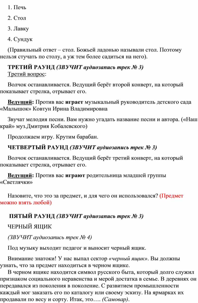 ПЯТЫЙ РАУНД (ЗВУЧИТ аудиозапись трек № 3)