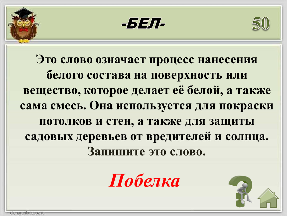 Это слово означает процесс нанесения белого состава на поверхность или вещество, которое делает её белой, а также сама смесь. Она используется для покраски потолков и стен, а также для защиты садовых деревьев от вредителей и солнца.