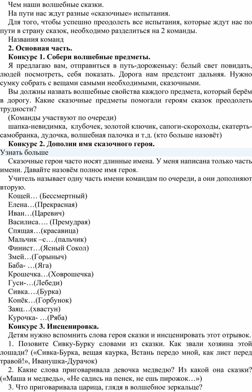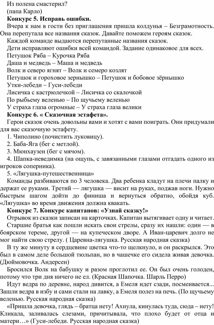 Герои сказок очень довольны вами и хотят с вами поиграть. Они придумали для вас сказочную эстафету.
