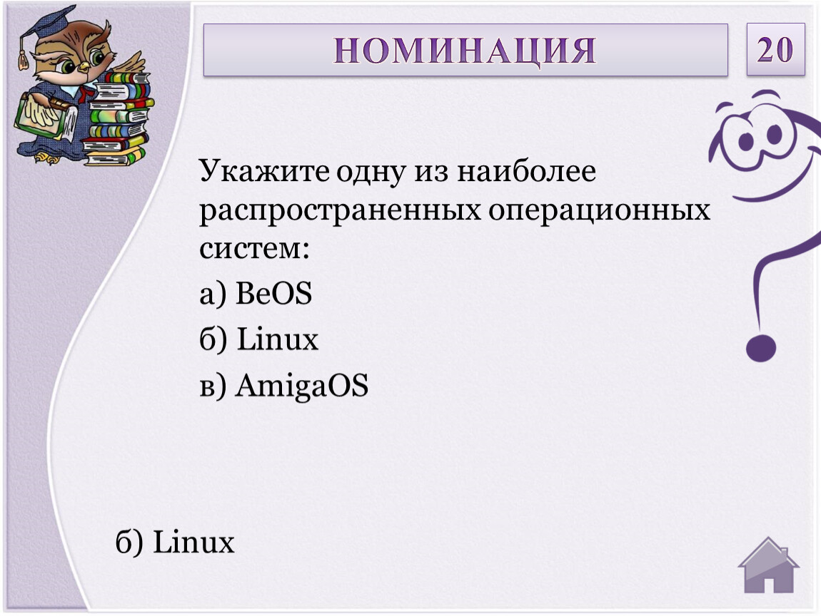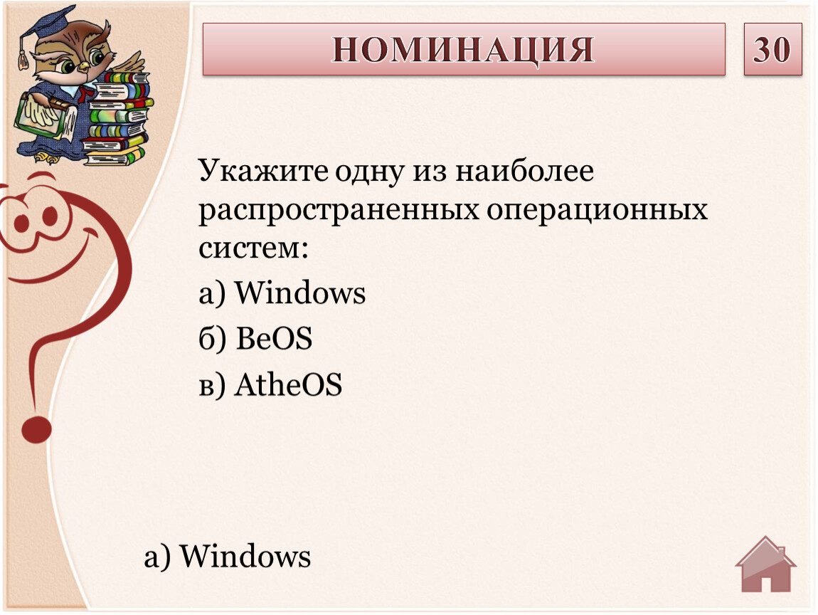 Укажите одну из наиболее распространенных операционных систем: