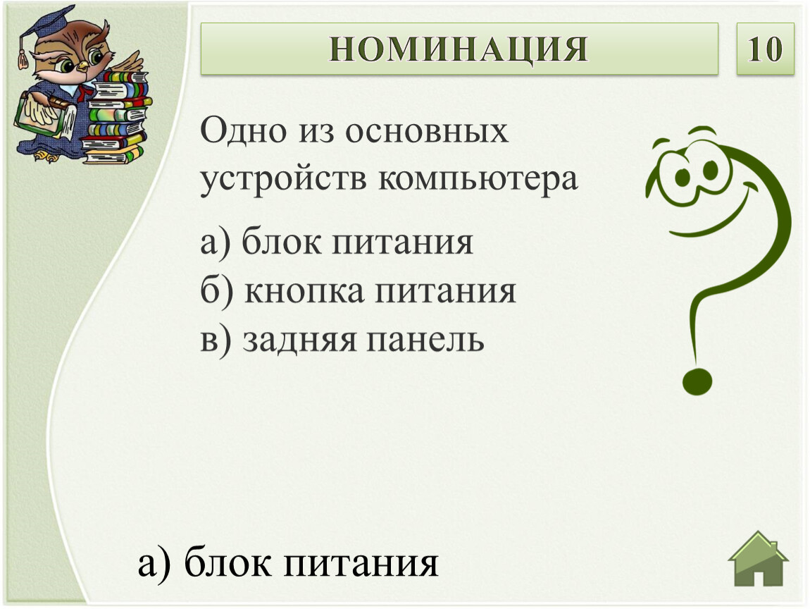 а) блок питанияб) кнопка питанияв) задняя панель