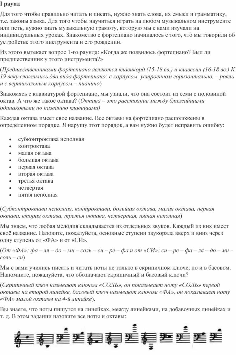 Из этого вытекает вопрос 1-го раунда: «Когда же появилось фортепиано? Был ли предшественник у этого инструмента?»