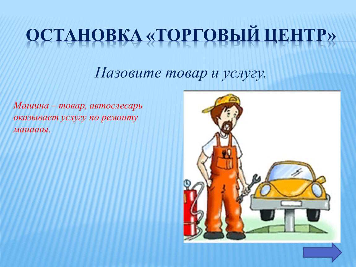 Машина – товар, автослесарь оказывает услугу по ремонту машины.