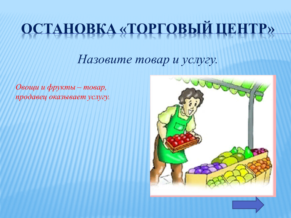 Назовите товар и услугу.
