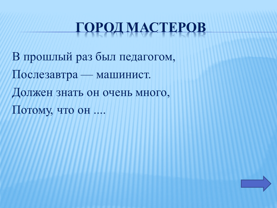 Послезавтра — машинист.