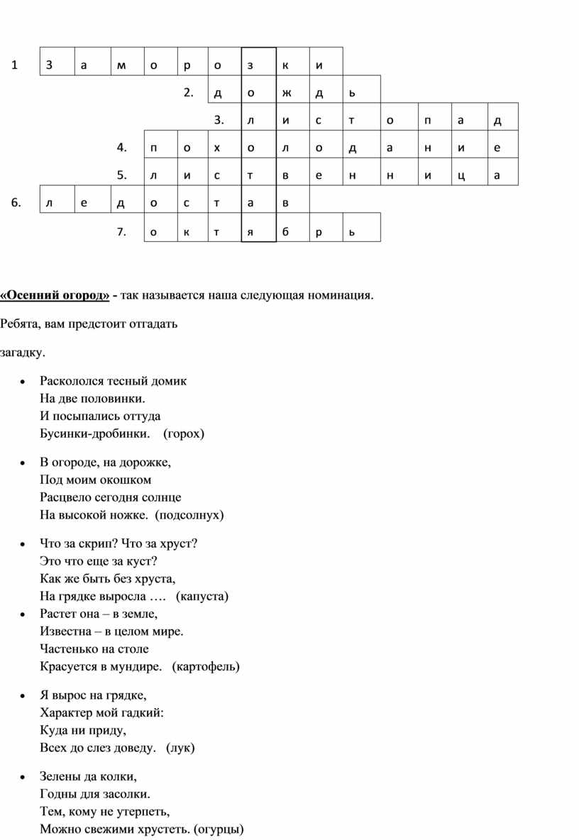 5. Лиственница 6. Ледостав. 7. Октябрь. Ключевое слово: Золотая.