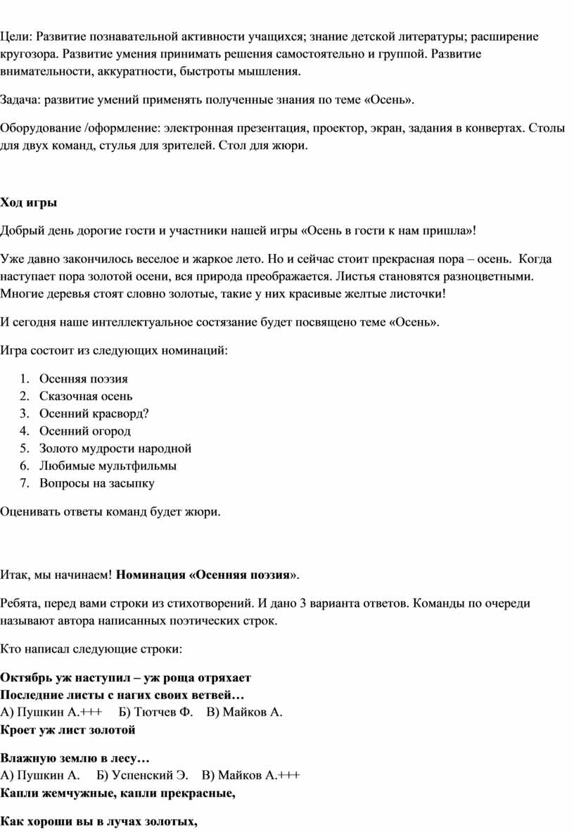 И сегодня наше интеллектуальное состязание будет посвящено теме «Осень».
