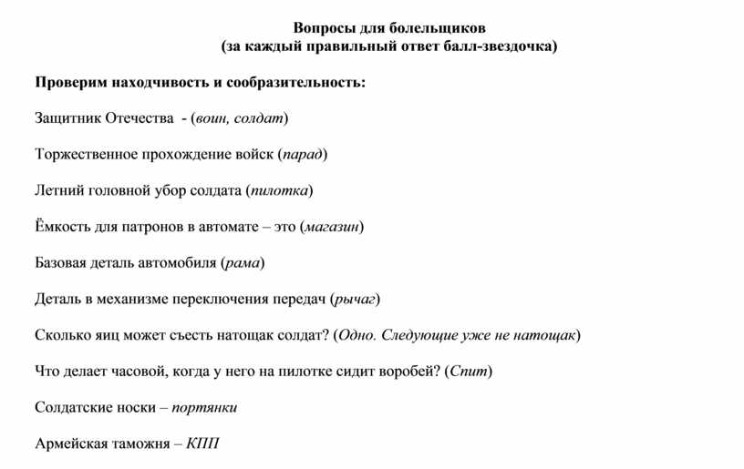 Вопросы для болельщиков