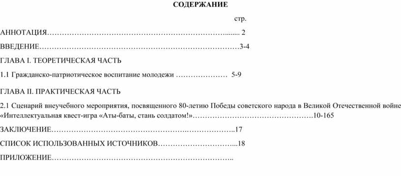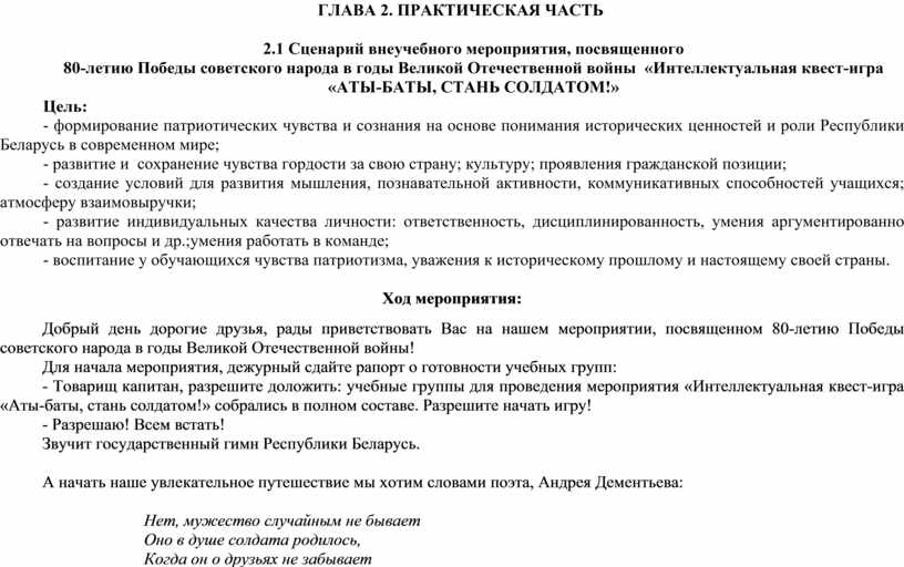 2.1 Сценарий внеучебного мероприятия, посвященного 80-летию Победы советского народа в Великой Отечественной войне «Интеллектуальная квест-игра «Аты-баты, стань солдатом!»………………………………………….10-165