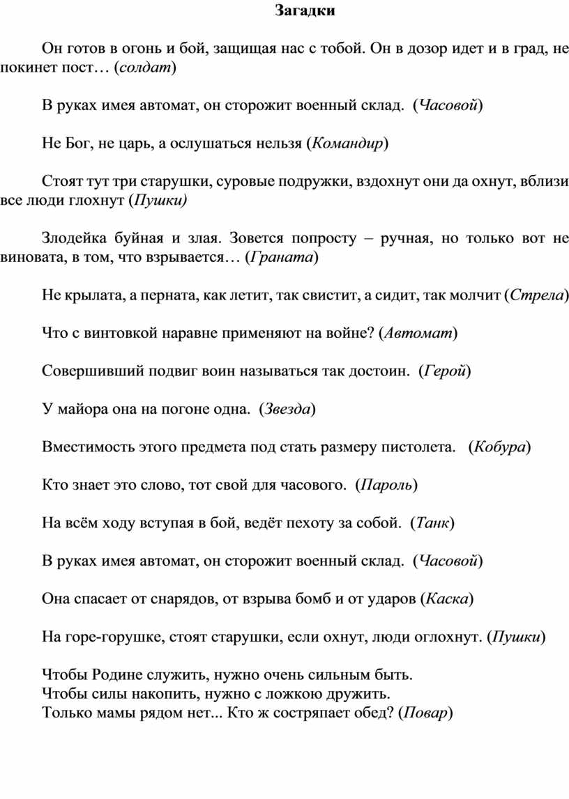 Он готов в огонь и бой, защищая нас с тобой. Он в дозор идет и в град, не покинет пост… (солдат)