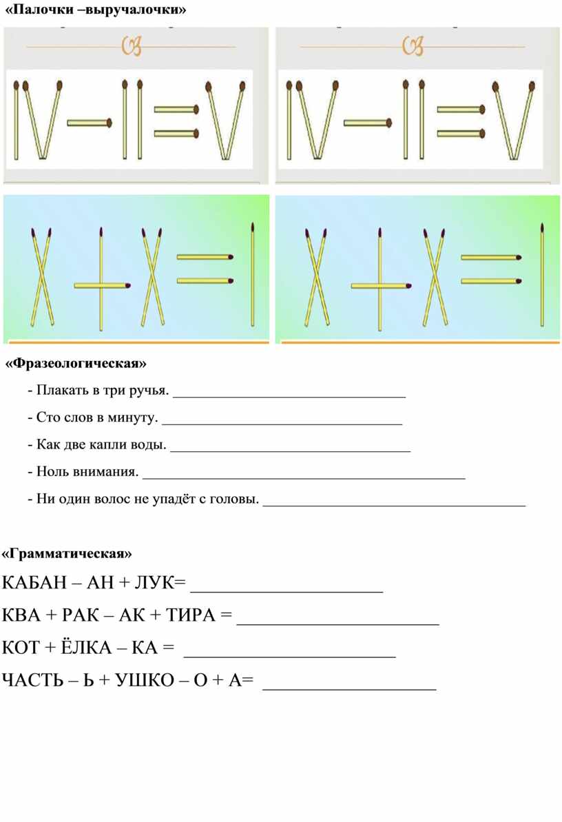 Каждой команде раздаются счётные палочки и карточка с неверным равенством. Задача команд: составить верное равенство. Можно передвинуть только одну палочку так, чтобы арифметическое равенство стало верным. Допускается менять и цифры и знаки.